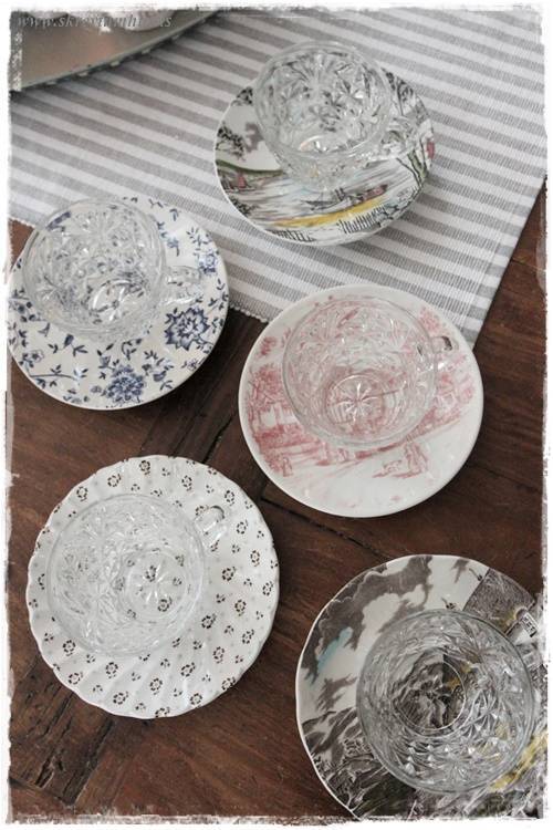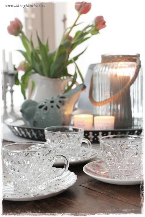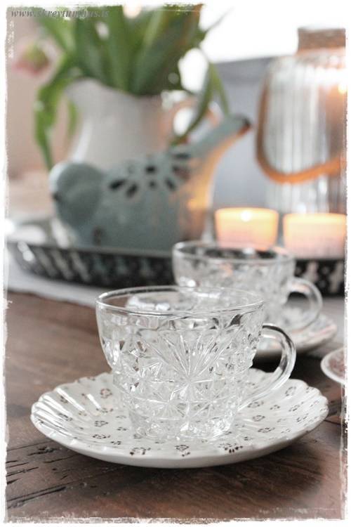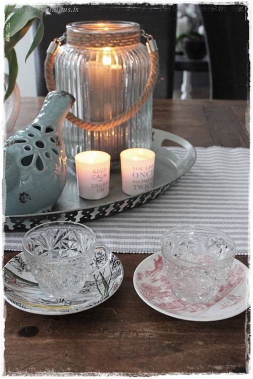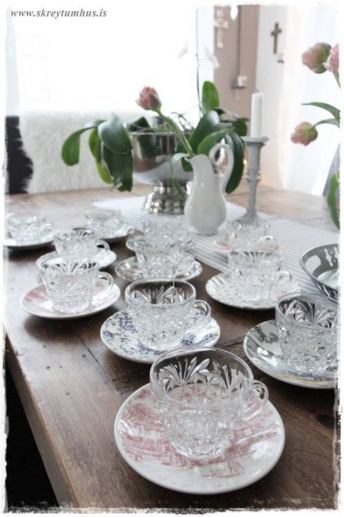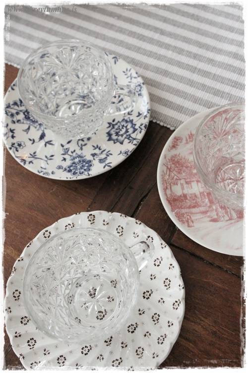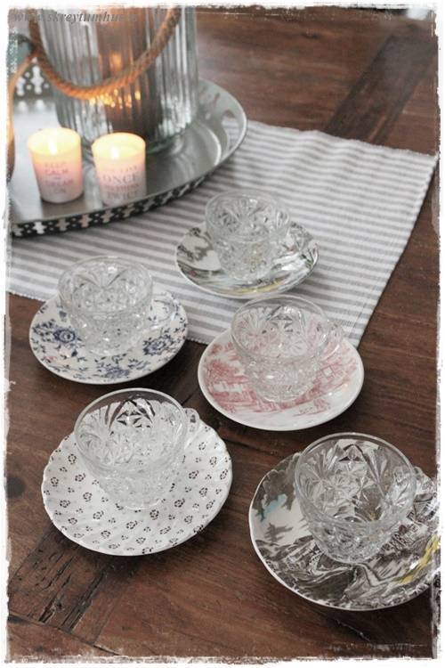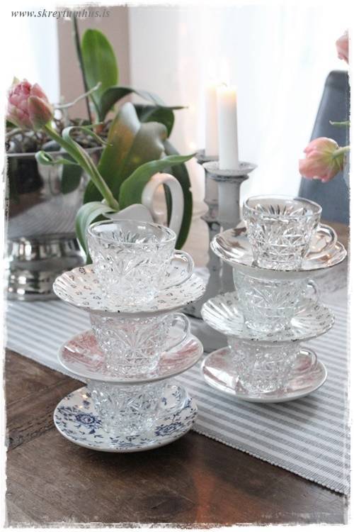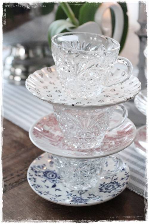 …einu sinni, í fyrra, keypti ég líka alls konar litlar undirskálar/kökudiska sem pössuðu ekkert saman, en pössuðu samt svo vel saman – þið vitið. Getið skoðað þann póst hér (smella)….