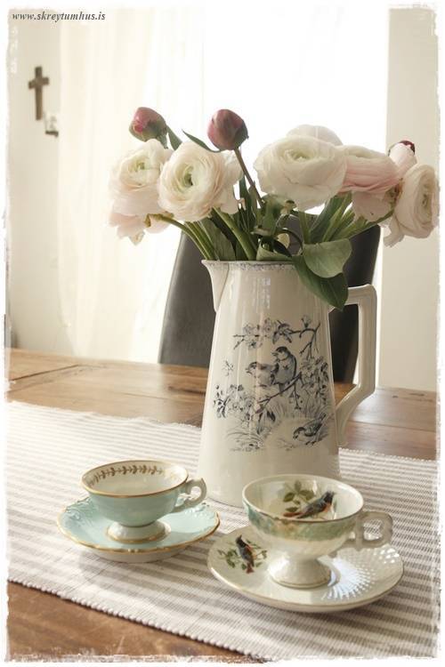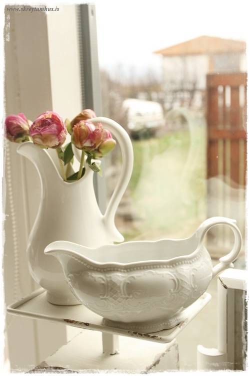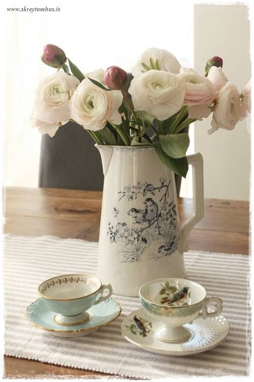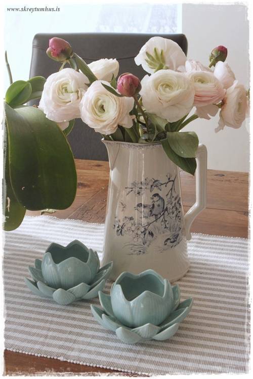 …og það bara þannig – að mínu mati – að það er fátt eitt fallegra en einmitt að vera með blóm í könnum. Það er eitthvað svo dásamlega sveitó og kasjúal við það 🙂