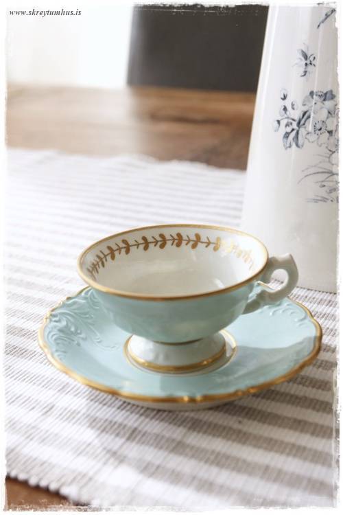 …hinn er svo dásamlega fínlegur og föööölsægrænblár, og með smá gylltum bryddingum…