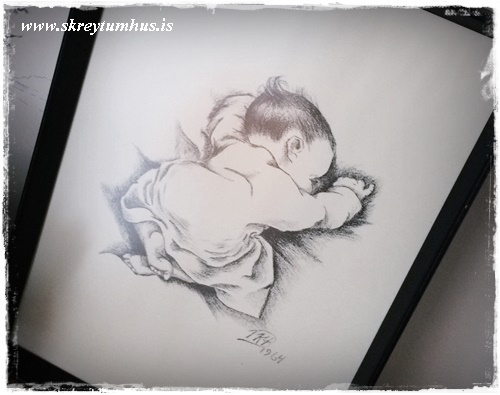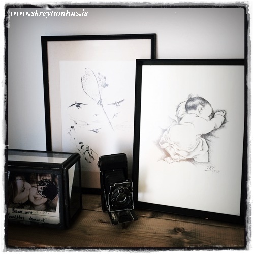 Kíkja aðeins í kringum okkur inni í stofu – þarna sjáið þið tvær myndir sem ég var að setja upp á hilluna góðu…
