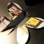 …af síðum bókanna og síðan bara hvert sem er 🙂 Ég klippti út fiðrildi fyrir afmæli dömunnar og eftir það, þá er bara gaman að klippa fiðrildi, einn fimmtudag þegar að bæklingarnir hrúguðust inn um lúguna þá sat þessi litli…