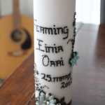 …haldið að ég hafi ekki bara steingleymt að sýna ykkur fermingarkertin! Ho mí god, abbsakið! Hér með kemur spes-bónus-afsökunnar-kerta-póstur – en svoleiðis póstar eru bestir 🙂 …ég keypti sem sé stórt kerti í Ikea og svo var ég með penna…