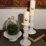 …er ekki snilld þegar að smá hugmyndaflug, kertastjaki, tréplatti, lím og hvítt sprey koma saman og útkoman verður svona góð?? Endilega kíkkið á bloggið hjá Thrifty Decor Chick, þrælsnjallt!