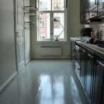 Hér er gamalt viðargólf í eldhúsi lakkað… …á óvenjulegan hátt – geggjað töff! 🙂 Ferlega flott hjá Vintage Chic!