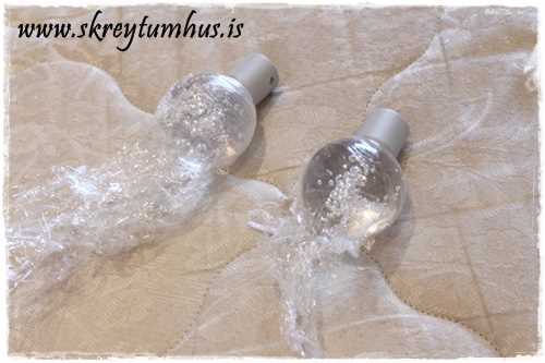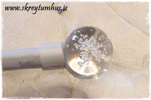 …hnúðurinn var reyndar á stönginni sem var fyrir glugganum áður, en ég vafði plasti utan um glerhnúðinn og spreyjaði síðan svart í stíl við nýju stöngina…