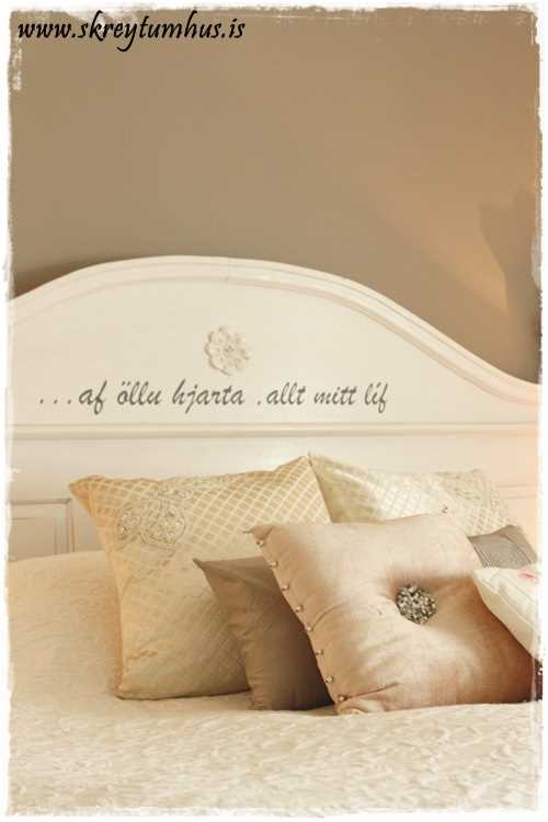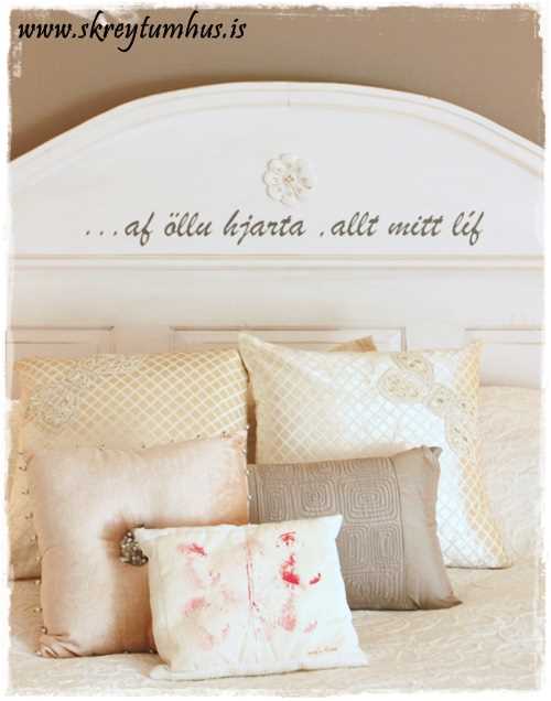 Fallegt hjá þér Soffía. … er einmitt á þeim stað að mig vantar svo hugmyndir fyrir svefnherbergið… það er ósköp plain… langar að dúlla það aðeins upp…. 🙂