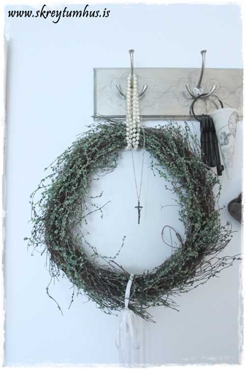 …krans, sem er enn upphengdur með perlufesti, því ég er svo mikil dama (hohoho)…