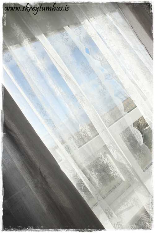 Ég er alveg að elska mýktina sem að það gefur að hafa blúndugardínuna fyrir innan en ljósgráu gardínuna fyrir framan…