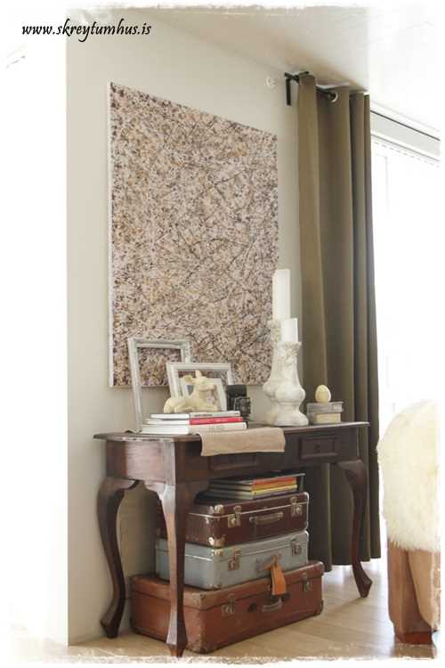Þessi er kominn á brúna vegginn, og jamm sólin skein svona skemmtilega inn þegar að ég tók myndina…