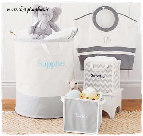…og þessa poka er ég með í bæði stelpu- og strákaherberginu, og gæti ekki verið meira ánægð með þá. Mér finnst gráu og bláu tónarnir æðislegir, sjá hér…