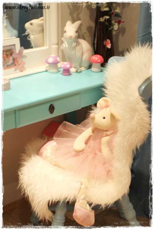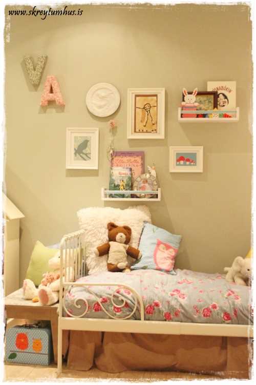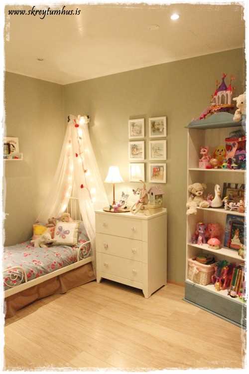 …inni í herberginu hjá heimasætunni minni fær margar fyrirspurnir. Ég ákvað, fyrst að ég er ekki enn komin með fullt af nýjum verkefnum (þó eru mörg í deiglunni), að sýna ykkur nokkrar myndir innan úr herberginu hennar og gefa upp liti og smá upplýsingar…