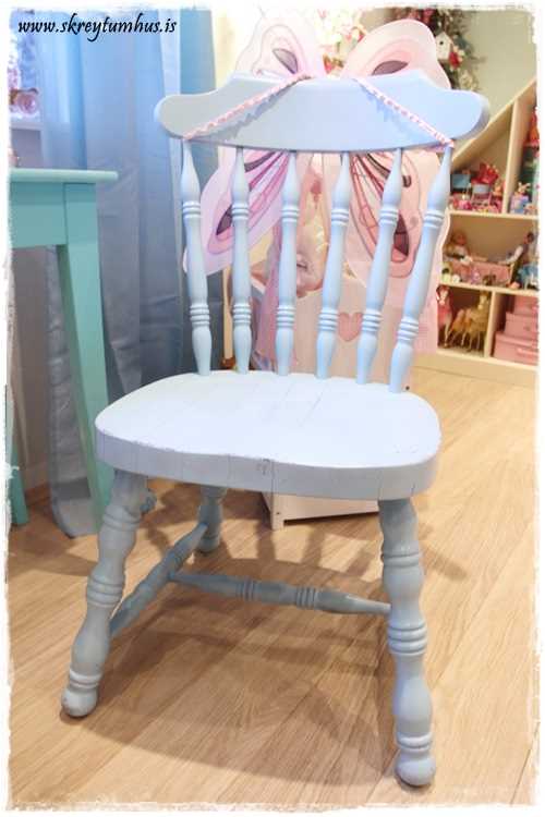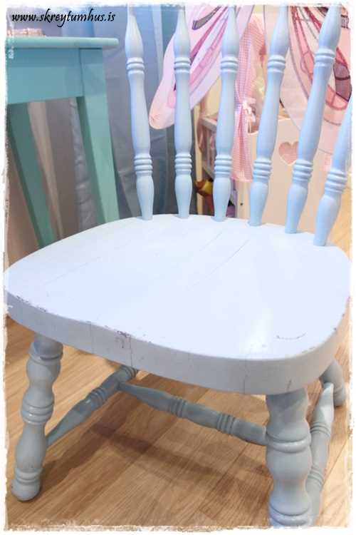 …ég man því miður ekki litinn á því, en hins vegar get ég sagt ykkur að ég spreyjaði stólinn bara beint, vann hann ekkert undir…