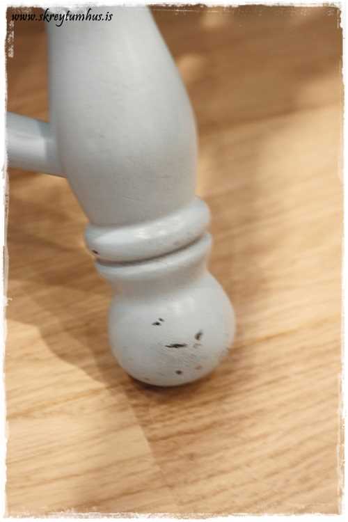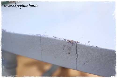 …margir hafa spurt um litinn á fallega borðinu sem að ég keypti hjá Húsi Fiðrildanna. Ég spurði sérstaklega um hvaða litur þetta væri, því að borðið var svona málað þegar að ég keypti það, og fékk það uppáskrifað á miða. Síðan í mínu gífurlega skipulagi þá týndist blessaður miðinn og það var alveg sama hvað ég leitaði. Ég sendi fyrirspurn á Hús Fiðrildanna og þau fundu því miður ekki fötuna. En vitið þið hvað?