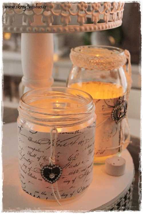 ÆÐIÆÐIÆÐI!!! Ég á einmitt nokkrar sem ég er alltaf á leiðinni að gera eitthvað við! Uppáhalds er krukkan með snærinu og hjartaskrautinu 😉