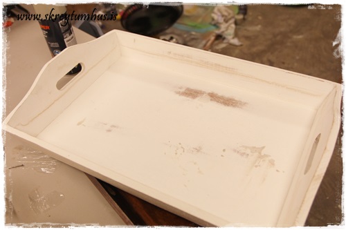 Ég elska að mála með kalklitunum frá henni Auði Skúla (sjá hér Facebook-síðuna og hérna er bloggsíðan hennar). Þannig er mál með vexti að ég var með hvítann bakka úti á borði seinasta sumar….
