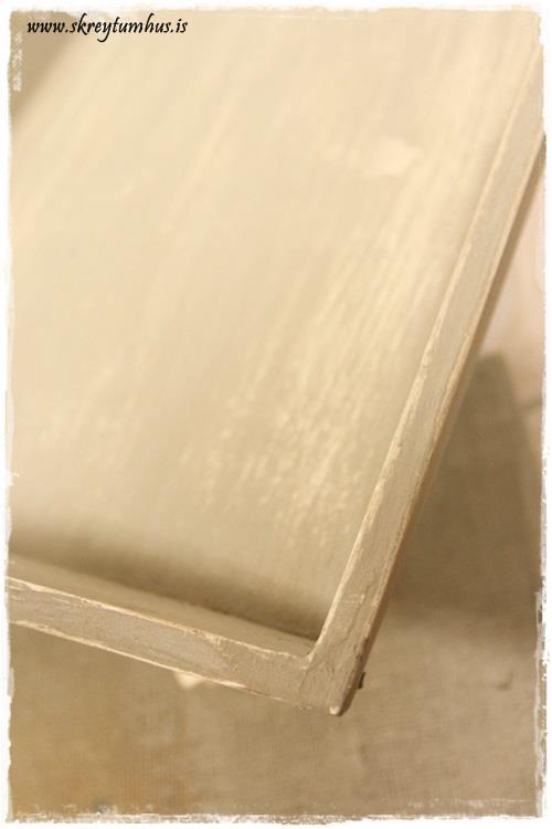 …því þufti ég að pússa hann aðeins upp og grunna upp á nýtt með hvítum grunni. Síðan tók ég fram hina fögru kalkmálningu og notaði Lute Secco-litinn…