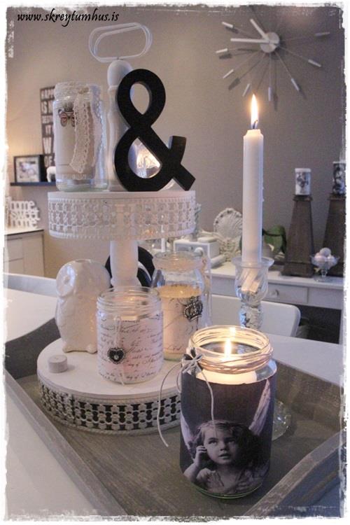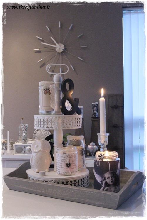 Ótrúlega flottur bakki og kertakrukkur, merkilegt hvað svona föndur hefur mikið að segja…