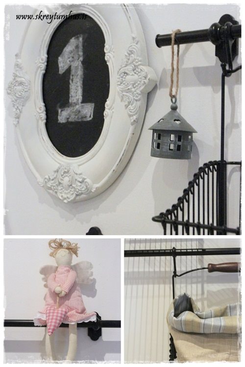 Love Jú miðinn er flottastur hehehe hmmm breytingar ja þú ert svo nýlega buin að taka skrifstofuna í gegn….segi þvottahúsið/geymslan 🙂 litli maðurinn fær ekki bleikan engil….stemmir ekki .