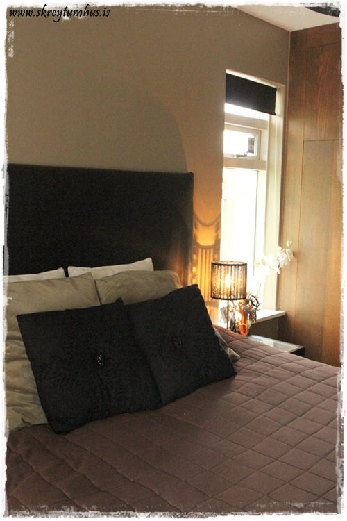 …ferlið hófst, eins og alltaf, á því að ég kom og kíkti á svæðið og við ákváðum hvernig þau vildu hafa þetta. Niðurstaðan varð eiginlega svoldið þannig að ég fékk frjálsar hendur og skemmti mér frábærlega. Rúmið var áður kirsuberjalitað og þau ákváðu að mála það hvítt. Hér sést fyrir myndin af horninu góða…