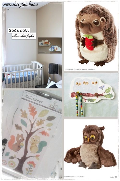 ohh mig langar líka í svona horn fyrir minn gaur, rosa flott. ertu ný búin að kaupa íkorna tré-límmiðan í Söstrene? ætli ég fái svona ef ég hleyp á mrg?