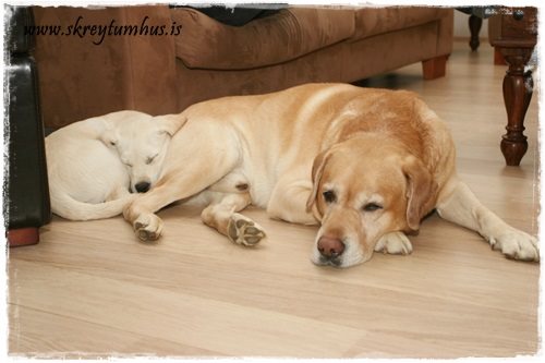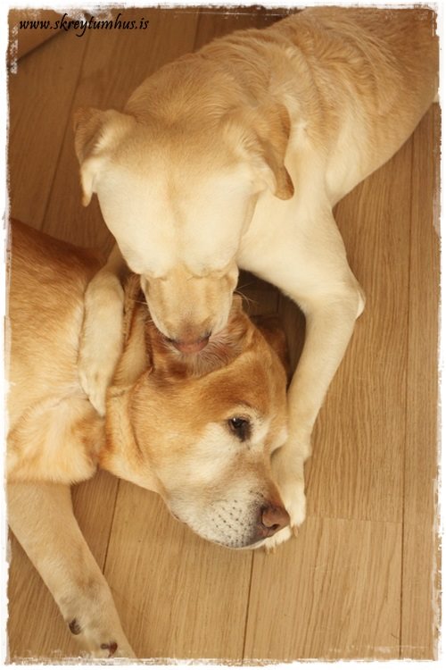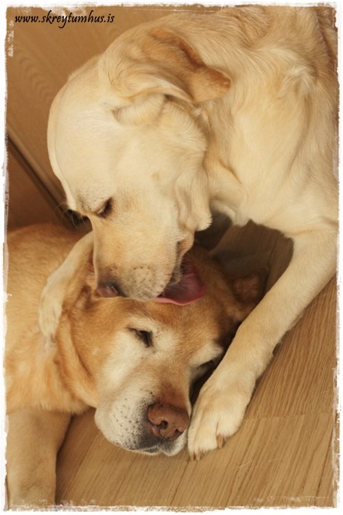 …þegar að við fengum litla dýrið fyrir fjórum árum þá var spennandi að sjá hvernig sá gamli myndi taka honum, svona þar sem að að hann hafi verið kóngur í ríki sínu í svo langan tíma. En þar sem að hann er einstakur ljúflingur þá tók hann litla strax, og þeir hafa verið bestu vinir frá fyrstu tíð…