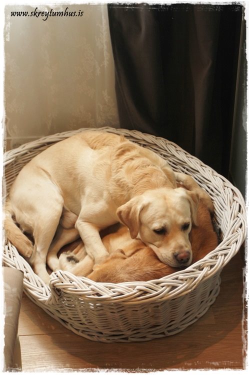 …en án þess að ég ætli að röfla um hundanna daglangt, þá vantaði þá nýtt svefnbæli. Auðvitað fann ég það síðan í Gutez, það er reyndar aaaaaaðeins of lítið fyrir þá tvo, en í það minnsta dugar það til í bili…