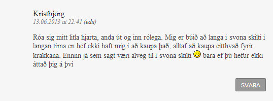 ERTU EKKI AÐ GRÍNAST, vó það sprettur bara út gleði sviti á kellingunni. Ekkert smá glöð kella sem fer að sofa eftir erfiða viku 🙂 Þetta bætir og gleður mitt hjarta óendanlega. Takk fyrir að vera með þessa yndislegu síðu sem gefur lífinu lit.
