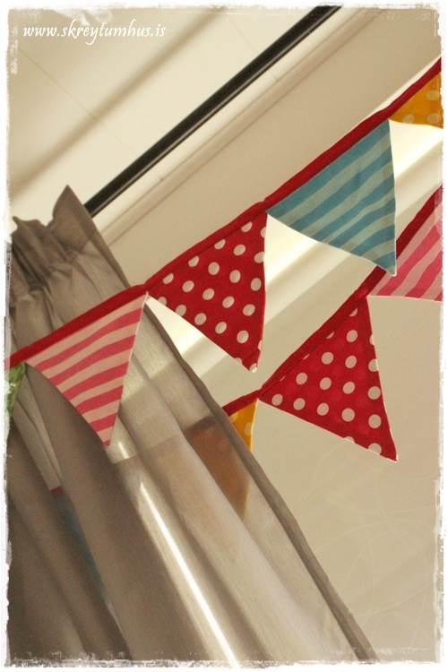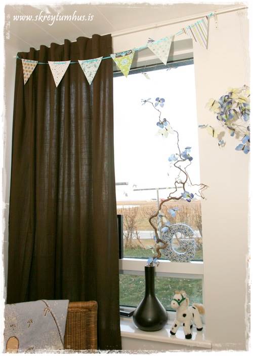 Æðislega skemmtilegt að fylgjast með blogginu hjá þér – þú ert alveg rosalega sniðug. Er einmitt búin að vera að græja herbergi fyrir son minn og er búin að nýta mér sniðugar hugmyndir frá þér 🙂 En mig langaði að spurja þig hvaðan fánalengjan í lið 9 er. Hef verið að leita að svona með öðru auganu en ekki fundið neitt nógu spennnandi. Finnst einmitt svo flott að hafa þetta svona í glugganum