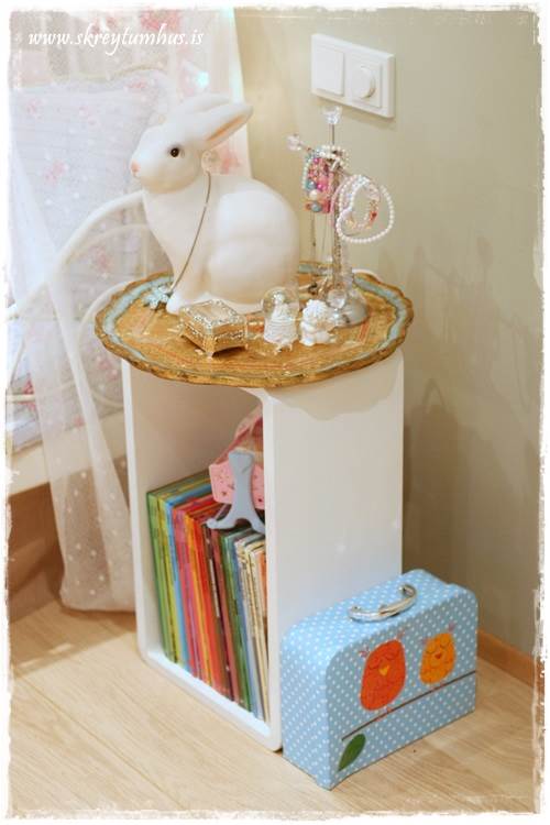 …það er um að gera að vera ekki bara með barnadót inni í barnaherbergjum. Kíkjið í geymsluna og kannið hvort að þið eigið einhverjar gamlar styttur, kertastjaka eða annað skemmtilegt sem gæti verið fallegt í barnaherbergið…