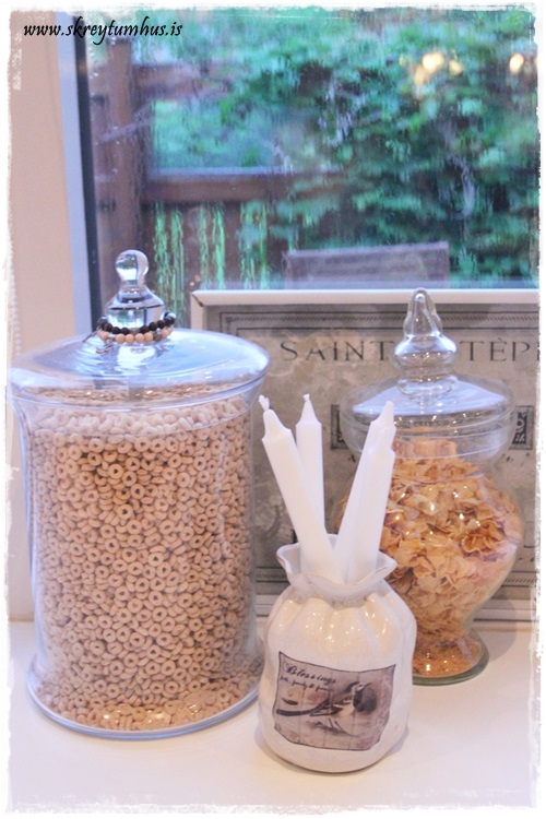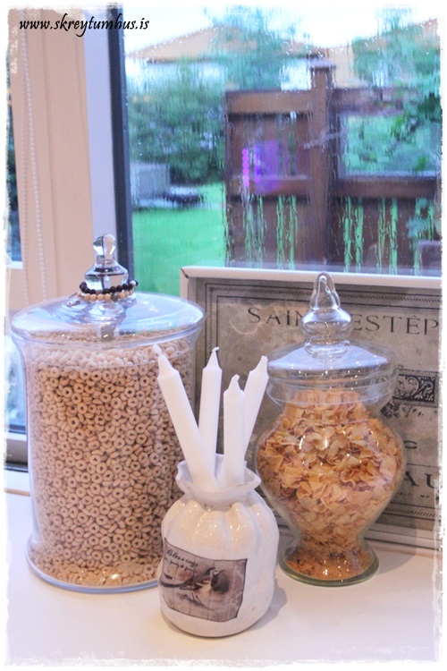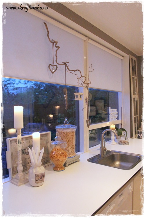 Þessi eldhúsgluggi er nú bara skapaður til að vera sífellt að punta upp á nýtt, þá er líka svo gaman að vinna í eldhúsinu 😉