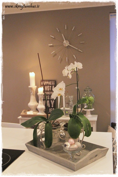 …þetta er stundum bara spurning um einfalda hluti eins og að setja bakka upp á hlið, og jafnvel þó að þið eigið ekki einhverja skrautlega bakka, þá er einfalt að breyta þeim þannig að þeir verði meira dekoratífir…
