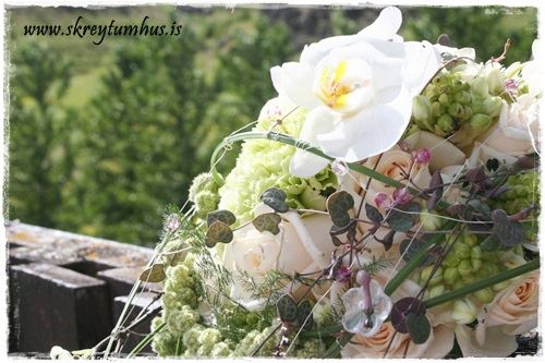 ég gerði ekki vöndinn sjálf. Við Beta (frá Blómavali í Grafaholti) gerðum díl og ég gerði hennar og hún minn. Maður er of taugatrekktur á seinustu metrunum til þess að sjá um þetta verk sjálfur 🙂