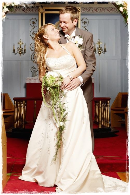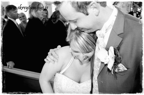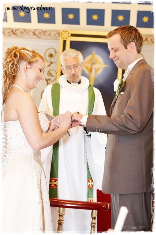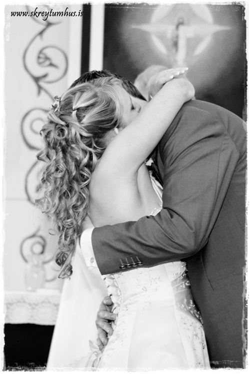 Okkur langaði í kósý brúðkaup, og það hentaði bóndanum afar vel að fá að standa bara á kirkjutröppunum og taka á móti fólki, frekar en að sitja inni í kirkju og hneigja sig til allra 😉