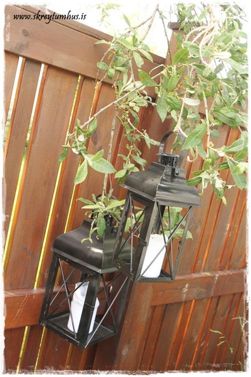 …ég tosaði eina greinina aðeins niður og festi í hana luktirnar tvær…