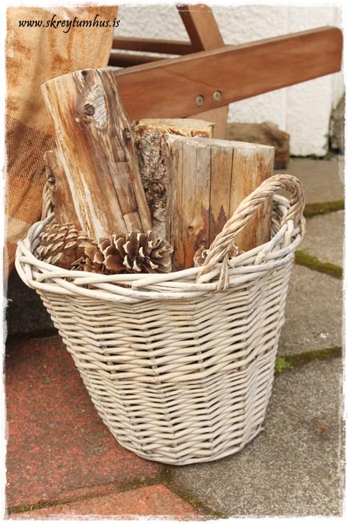 …þessi karfa sýnir kannski að stundum þarf ekki nema smá lurka og köngla, og þá ertu komin með smá skreytingu úti við…