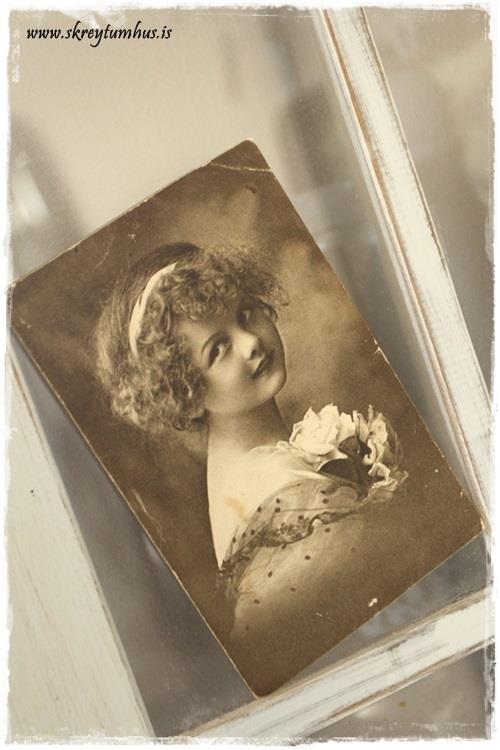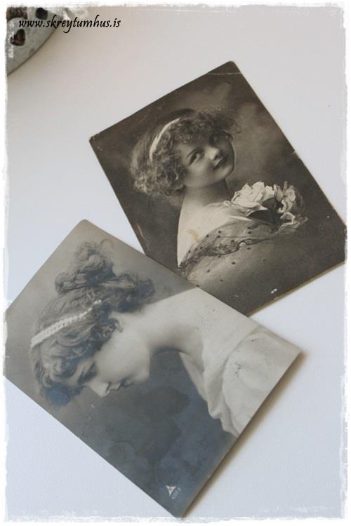 …en ég vissi/mundi/þráaðist við, því að ég var viss um að ég hafði einhvers staðar í fórum mínum tvö svona “alvöru” gömul kort. Kort sem að ég keypti á Kvennó-árunum mínum þegar að ég var öll í antíkhlutunum. Viti menn, ég fann þau núna um daginn loksins. Ástæðan fyrir að ég gat ekki fundið þau áður var sú að ég hafði sett þau með gömlum ljósmyndum.