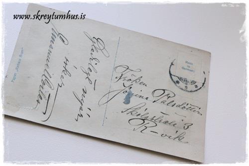 …mér finnst pínu erfitt að lesa þessa dásamlegu skrift, en kortið er skrifað á “sunnudagskveldið kl 8 – 17/11 1913”, eða mér sýnist þetta vera 13. Gaman að vita svona upp á hár hvenær þetta er skrifað, þetta er næstum eins og Facebook-status 😉