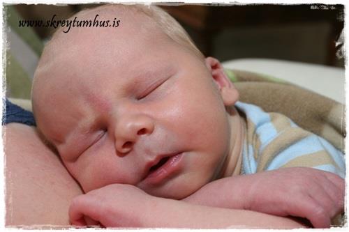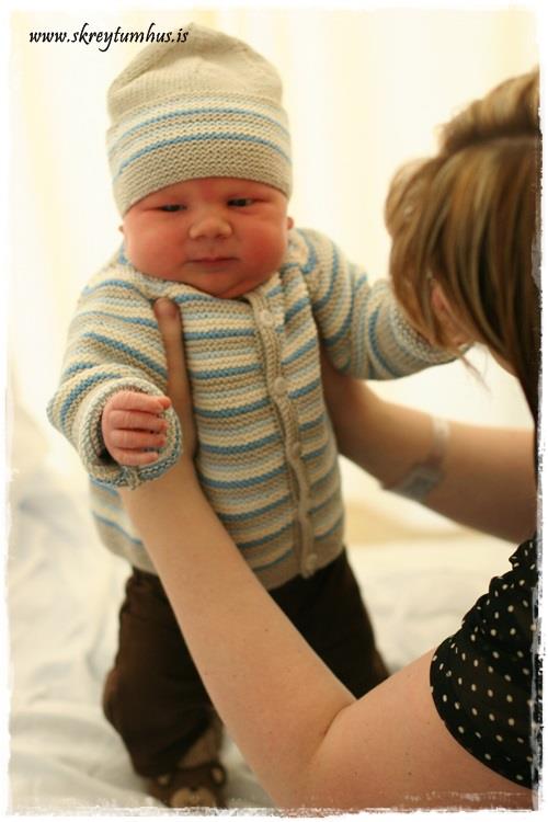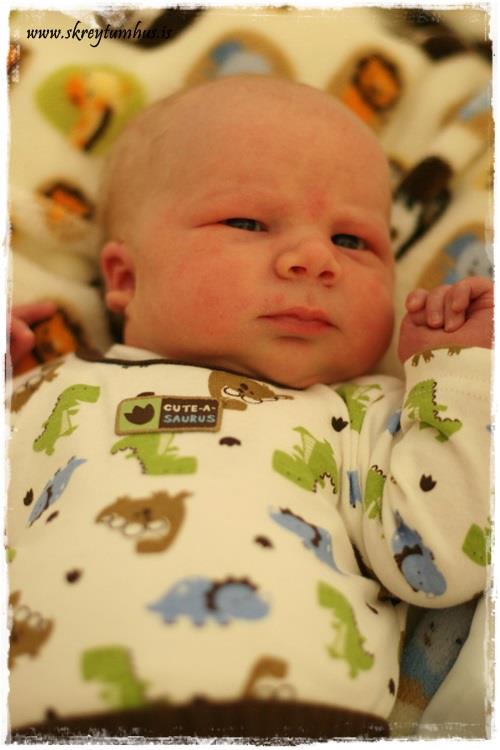Til hamingju með flotta drenginn þinn 🙂 Hann hefur akkúrat ekkert breyst frá því hann var nýfæddur skv. myndunum…aðeins stækkað og þroskast 😉