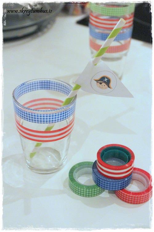 Allt snilldin ein, fánarnir á rörin eru eitthvað sem ég ætla að apa upp eftir þér aftur og aftur. Límband á glösin hefur þegar verið kóperað á þessu heimili með fimmtudagsboozt-inu… mín 4ra ára drakk þrjú glös hún var svo sæl með bleika límbandið 😉