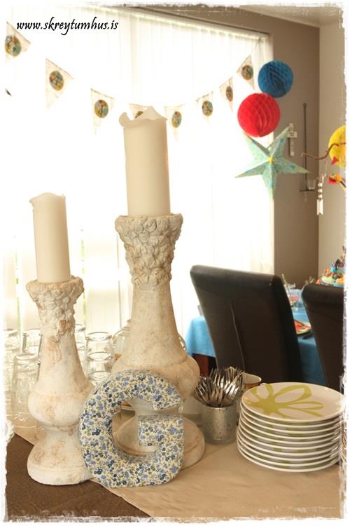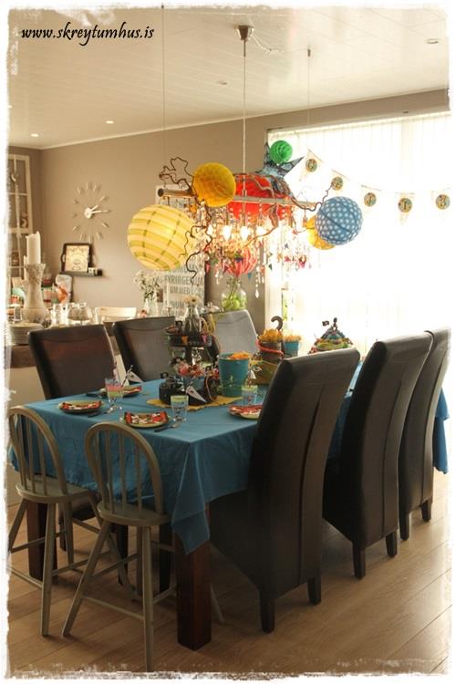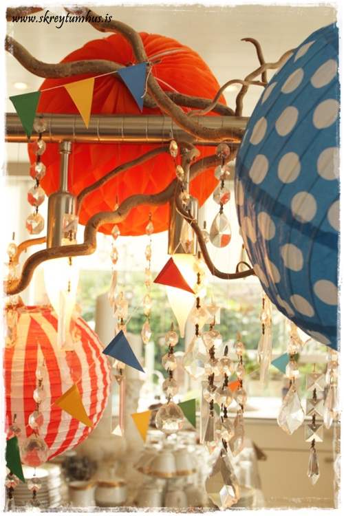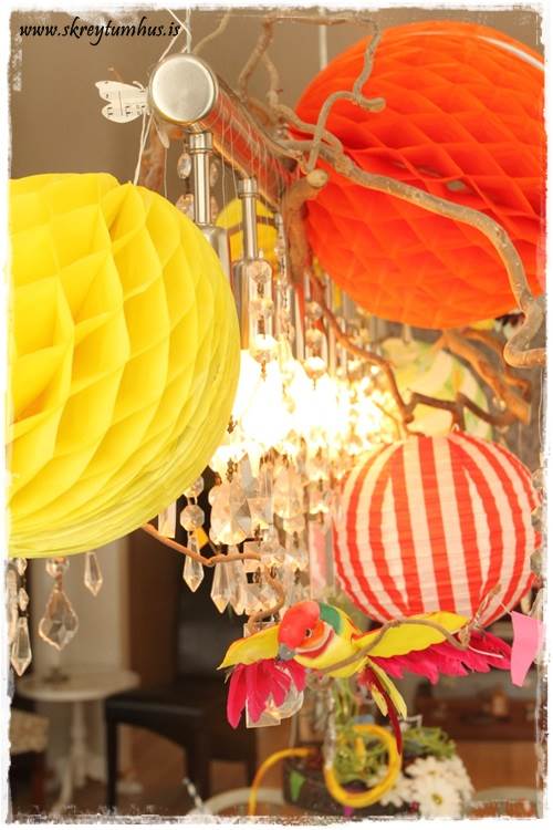 …það er komin hefð fyrir því að skreyta ljóskrónuna í afmælum.  Mjög einföld leið til þess að ná fram stemmingu.