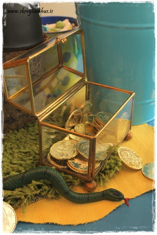 Sjóræningjar verða að eiga fjársjóð – ekki satt? – og gullpeningarnir fengust í Partýbúðinni.