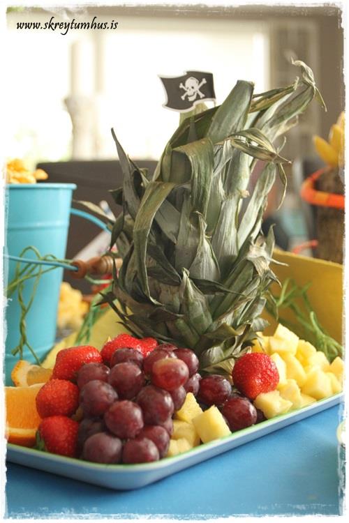 …ég fékk bara ljótann ananas í búðinni, en hann varð svona líka sjóræningjalegur og fínn þegar að fáninn var festur í…
