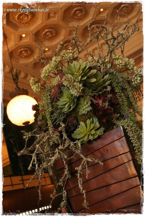 …frúin alltaf með augun á blómaskreytingunum…