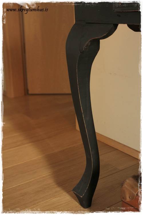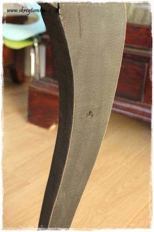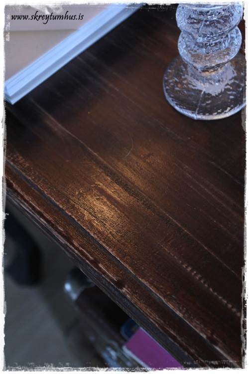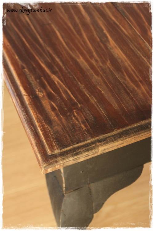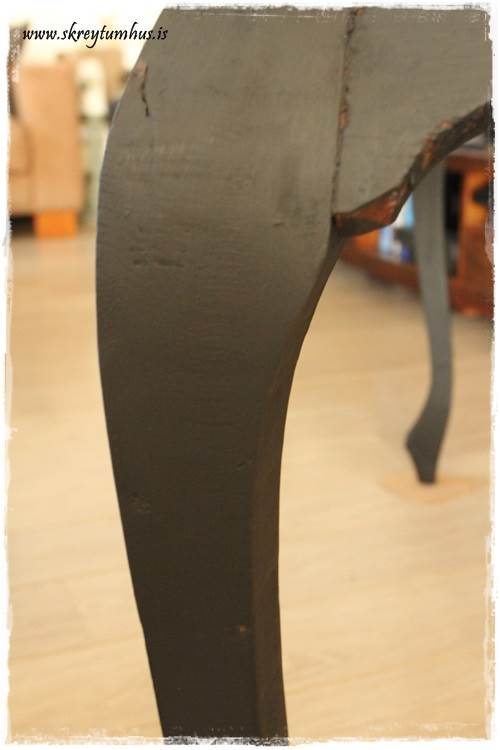 …en að þessu sinni, eftir að hafa málað borðið fór ég yfir það með sandpappír á köntunum…