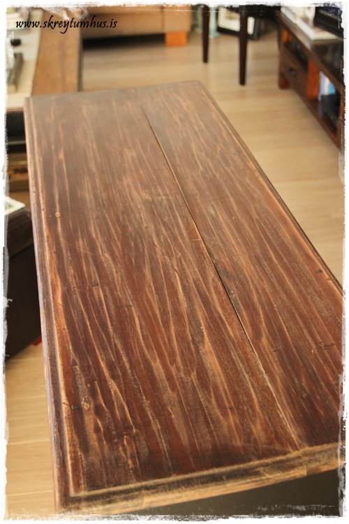 …fór líka gróflega yfir borðplötuna með sandpappír, til þess að hún virkaði aðeins veðruð…