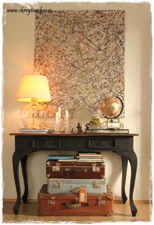 Hrikalega flott! Fyndið samt, mér finnst málningin á hliðarborðinu vera dökkgrá en ekki svört…var að velta fyrir mér (þangað til ég sá að þú hafðir notað sömu málningu) af hverju þú hefðir notað dökkgráa á hliðarborðið! Svona getur birtan blekkt mann!