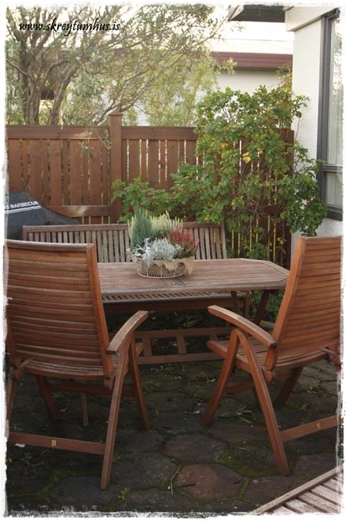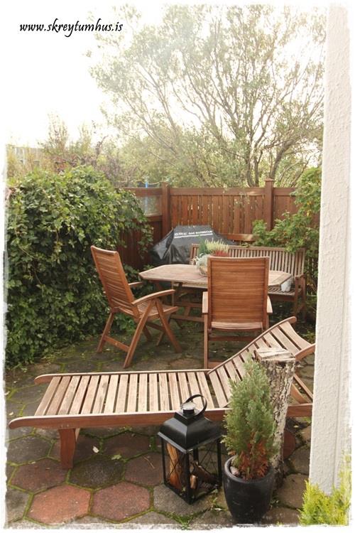 …ég ákvað líka að breyta aðeins uppröðuninni á húsgögnunum fyrir utan hús, ekki praktísk uppröðun ef ég þyrfti að nota grillið en þar sem að það er ekki á döfinni, þá er þetta allt í gúddí…