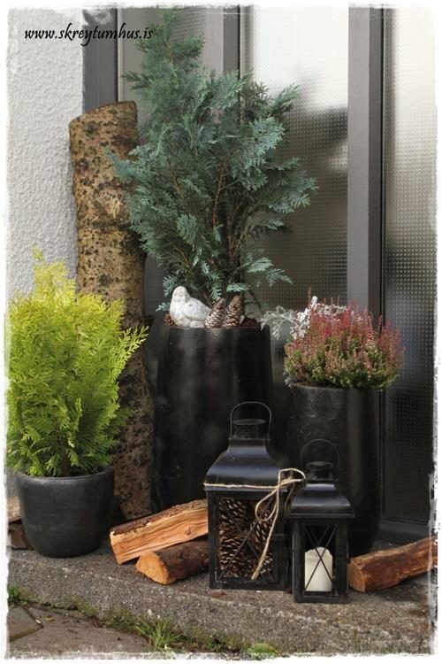 …síðan fékk ég mér líka lítil tré í pottana fyrir utan, ásamt því að vera með ericur og silfurkamb, skellti síðan smá svona trjátrumbum með, bæði stórum og smáum…