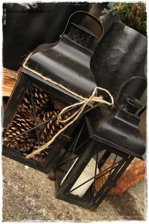 …taka gler úr luktum og fylla með könglum, það er ein leið, eins er einfalt að breyta þeim með smá snærisspotta og binda í slaufur…