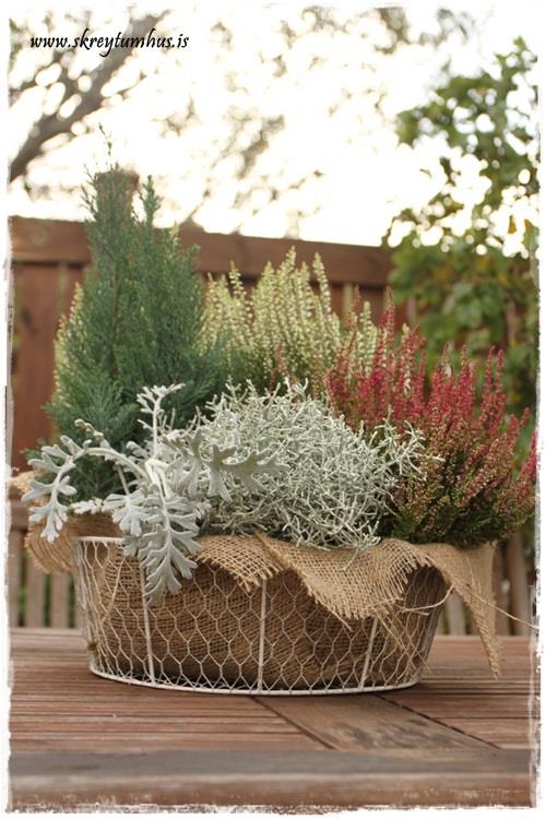 …er komið, því er ekki að neita.  Ég stóð hér við eldhúsgluggann og starði út í garðinn, þar sem að öll laufin á trjánum eru að reyna að fjúka af  í sömu andrá og ákveð að nú væri rétti tíminn til þess að taka haustið föstum tökum.  Sjáið til, ég keypti aldrei nein sumarblóm af viti í sumar því að ég var alltaf að bíða eftir sumrinu, en nú þarf ekkert að bíða lengur því haustið er svo sannarlega komið og því ber að fagna, og skreyta!